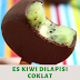 Es Kiwi Dilapisi Coklat - Buah kiwi sering dihubung-hubungkan dengan negara New Zealand. Sesungguhnya buah kiwi ini berasal dari china bagian selatan dan dideklarasikan sebagai buah nasional negara China. Bentuknya bulat lonjong sebesar telur ayam, kulit luar berwarna kecoklatan dan berbulu. Saat buah di belah akan terlihat daging buah yang berwarna kuning sampai kehijauan dengan biji-biji kecil berwarna hitam yang melingkar dibagian tengahnya.